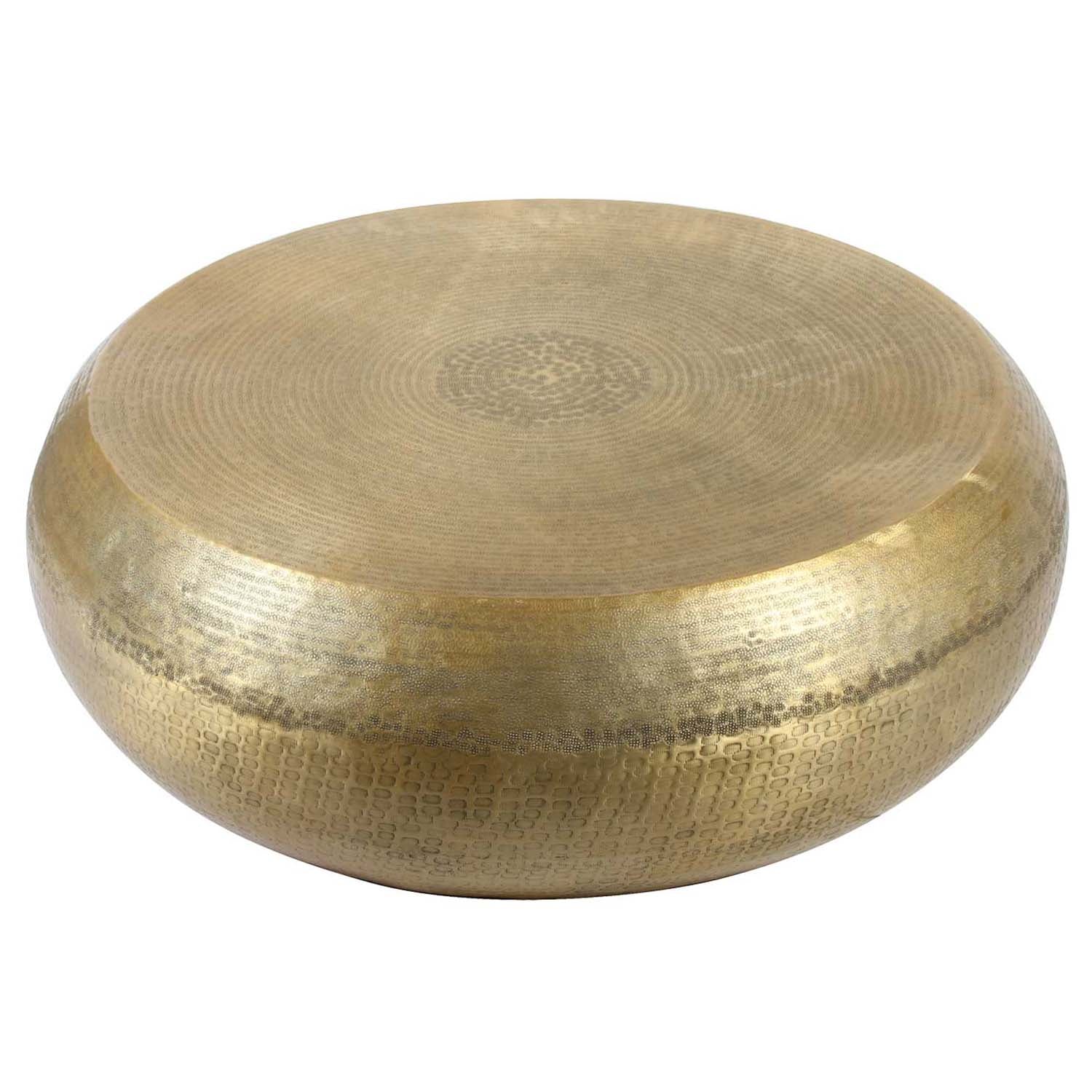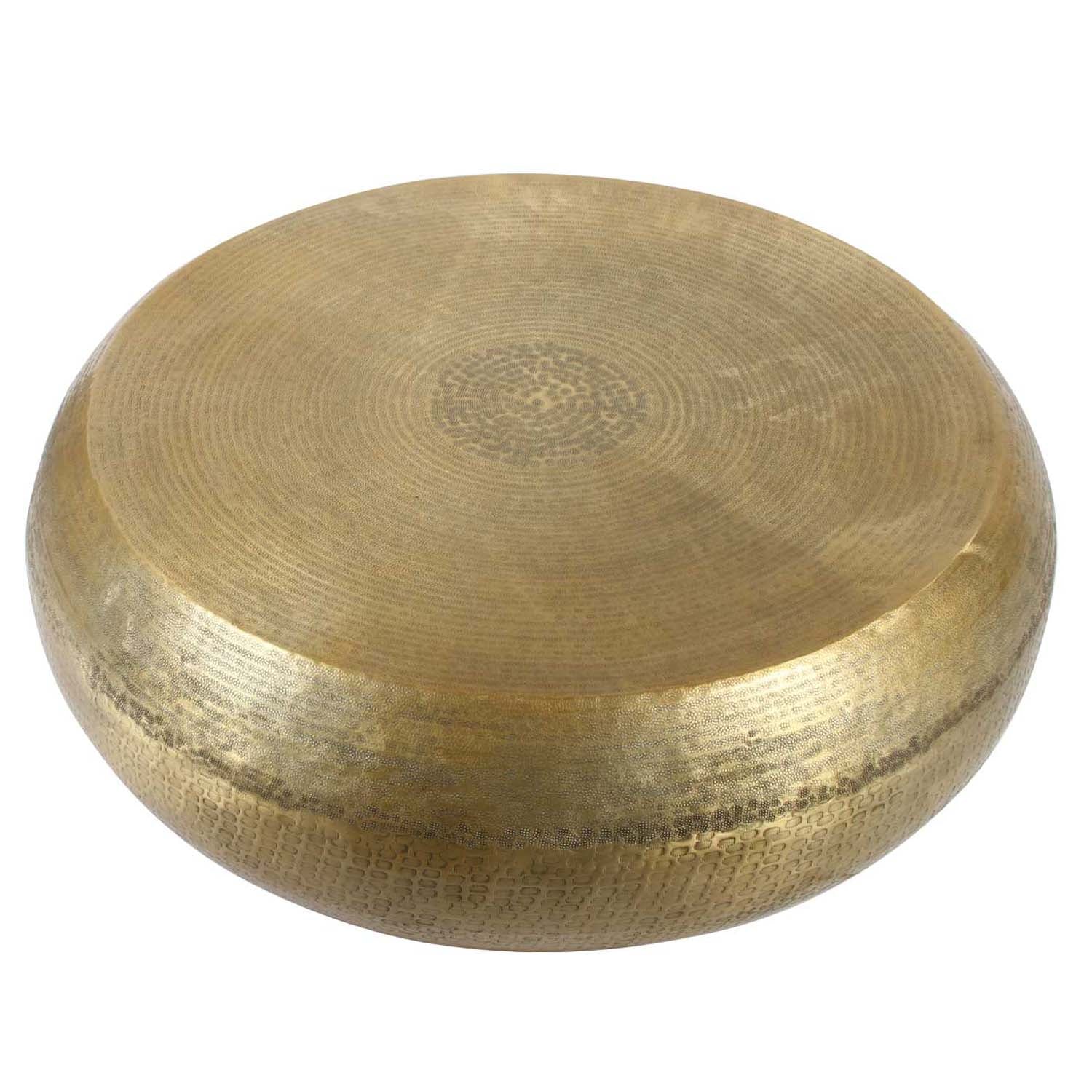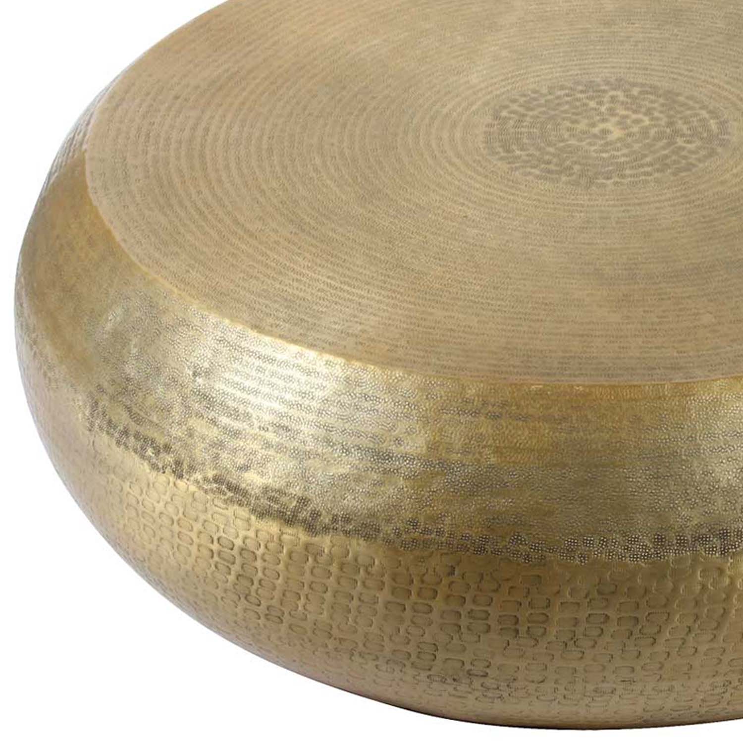 A high-quality aluminum coffee table. A piece of furniture that you don't see every day. The gold-colored table looks particularly good in the living room as a sofa table or as a side table in the study or office. This piece of furniture is guaranteed to be a highlight and will be the eye-catcher in any room. The shiny round table with a hammered finish is a real eye-catcher. It can also be used as a side table, bedside table, storage table, flower table, or decorative table.
