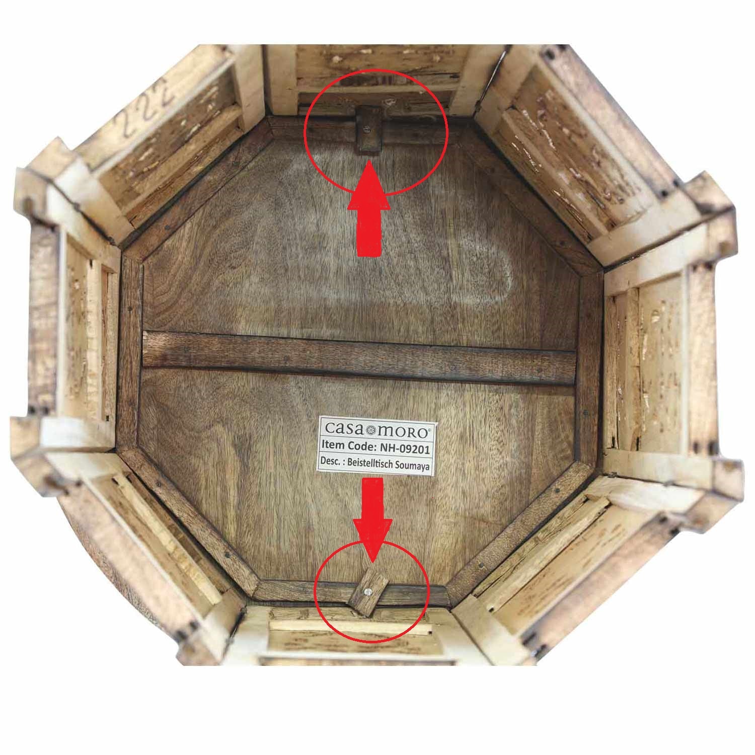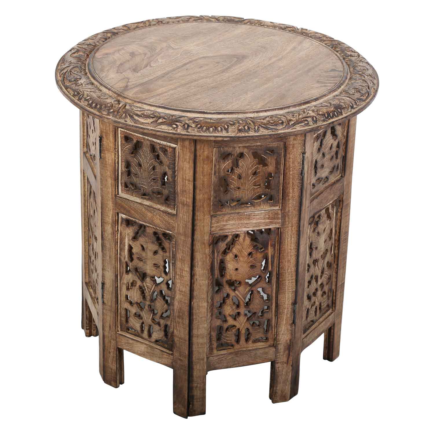 Beautiful oriental side table 'Soumaya' made of genuine Indian mango wood, crafted with elaborate carving. The table has been carefully handcrafted and decorated with fine carvings. With this oriental coffee table, you can bring a piece of 1001 Nights into your home and give your room a cozy atmosphere. This side table can be dismantled.