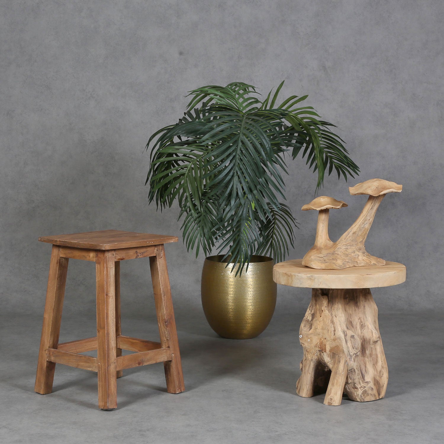 This teak stool can be used in many ways, e.g., as a flower stool, seat stool, and footstool.